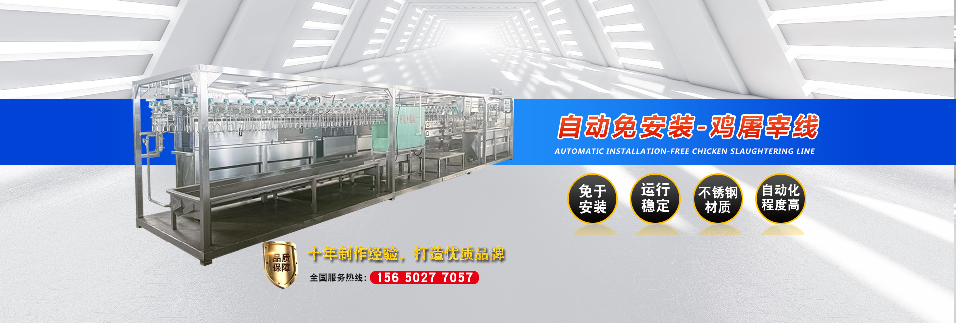 公司長期與國內(nèi)外屠宰加工企業(yè)合作,走引進(jìn)——消化——?jiǎng)?chuàng)新和自主研發(fā)相結(jié)合的道路,在國內(nèi)外同類產(chǎn)品的基礎(chǔ)上,不斷更新和改造。公司主要設(shè)備有:A字型立式脫毛機(jī)、臥式脫毛機(jī)、強(qiáng)力噴淋機(jī)、松毛機(jī)、浸燙池、螺旋預(yù)冷機(jī)、禽籠清洗機(jī)、電暈機(jī)、兔扯皮機(jī)、兔割前爪/后爪機(jī)、剝胗機(jī)、自動(dòng)洗鉤機(jī)、螺旋燙爪機(jī)、雞爪脫皮機(jī)、分割輸送帶等屠宰用設(shè)備。其中,公司獨(dú)力發(fā)明生產(chǎn)設(shè)計(jì)的“電動(dòng)調(diào)節(jié)脫毛機(jī)”及“自動(dòng)控水控溫浸燙池”順利通過知識產(chǎn)權(quán)局的實(shí)質(zhì)性審查。公司所生產(chǎn)的設(shè)備 可與國外同類產(chǎn)品配套使用,設(shè)備遠(yuǎn)銷阿爾及利亞、澳大利亞等中東、非州等并建立了長期穩(wěn)定的合作關(guān)系。